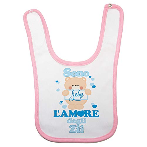 Fupies Bavaglino neonato personalizzato con nome e orsetto sono l'amore degli zii, Rosso
