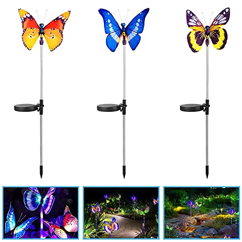 Furado Luci Giardino Energia Solare,3 Pezzi Luci Solari forma di Farfalle,Luce Solari LED Esterno Giardino,Luci Solari Per Esterni,Luci Giardino Solari,Luce di palo solare per giardino, prato, cortile
