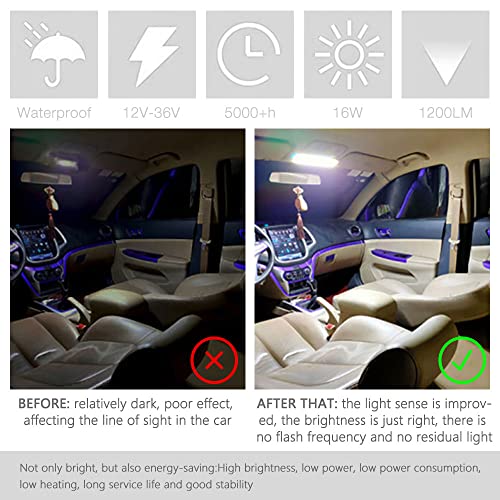 【Alta luminosità】 Luci LED Interni Auto utilizza 108 LED ad alta luminosità, che possono emettere un flusso luminoso bianco di 1200 lm. Può soddisfare le tue esigenze di luminosità e fornirti un'illuminazione confortevole. Il case è realizzato in acrilico e una spessa lega di alluminio con una buona dissipazione del calore.