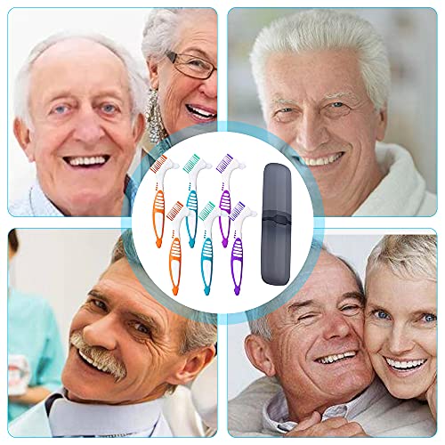 Furado 6 Pezzi Spazzolino da Denti Falso,, Pennello Dentiera Duro Dente Spazzolino da Dentarie Spazzolino da Pulizia Pennello con Case, Dentiera Spazzola, Adatto per la Pulizia di Protesi Dentarie