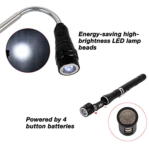 【Espandibile e flessibile】La luce di ispezione magnetica con asta telescopica può essere estesa da 20 cm a 59 cm e la base magnetica può essere fissata al metallo, liberare le mani e illuminare dove serve.