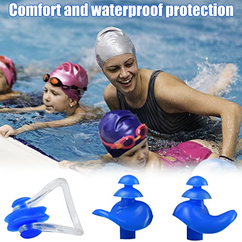 【Doppia tenuta dell'acqua】 Set di clip per naso e tappi per le orecchie per nuotatori - Tappi per Le Orecchie da Nuoto per adulti e bambini dagli 8 anni in su, dal design ergonomico e progettato per adattarsi al contorno dell'orecchio.