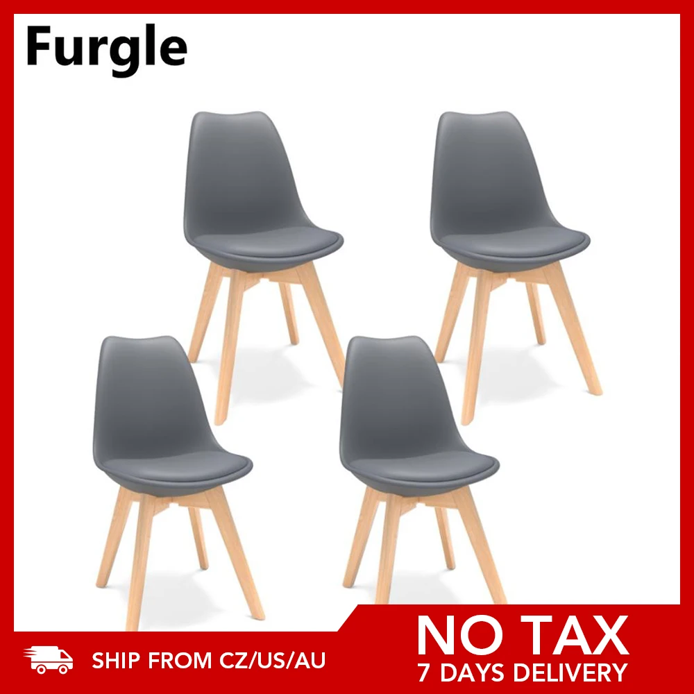 Furgle Black 4Pcs Dining Chair Modern Bar Chair Kitchen Chair with Padded Seat Faux Leather Tulip Beech Wooden Legs Lounge Chair