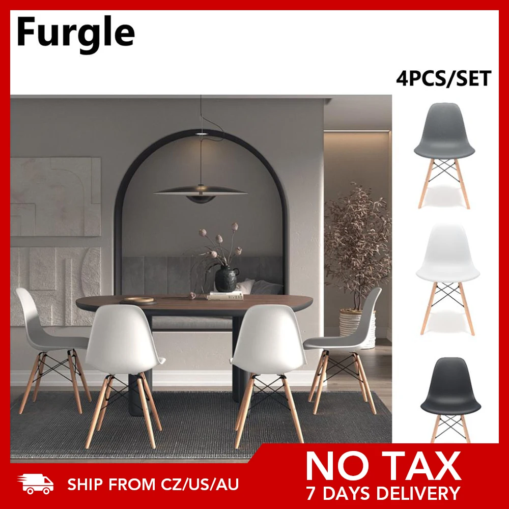 Furgle 4Pcs Dining Chair Retro Design Coffee Chair Set of 4 Plastics Office Chair with Wood Legs for Kitchen Dining Room 3 Color
