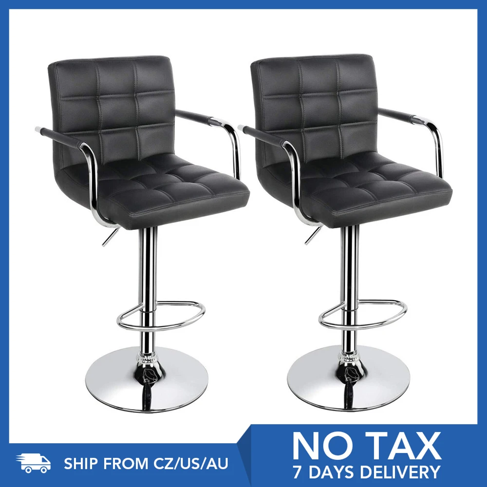 Furgle 2Pcs Large Size Bar Chair Bar Stools High Back Comfortable PU Stool with Metal Base Swivel Seat Adjustable Counter Stools