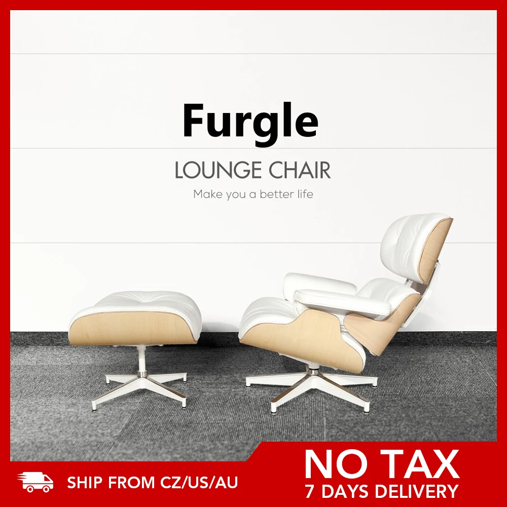 Furgle Modern White Genuine Leather Recliner with Ottoman White Ash Wood Mid Century Lounge Chair Chaise Living Room Bedroom