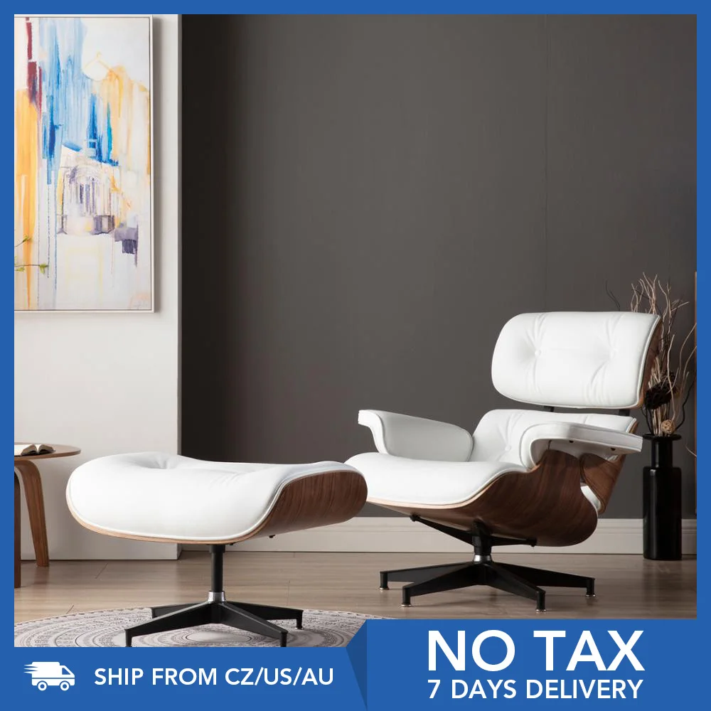 Furgle White walnut Leather Armchair Replica Lounge Chair with Ottoman Walnut Chaise Classic Real Leather Lounge Chair for home