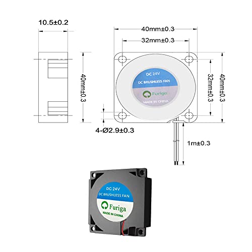 Furiga - Ventola di raffreddamento per stampanti Ender 3 Ender 3X, Ender Pro 3D, 40x40x10 mm, DC 24 V