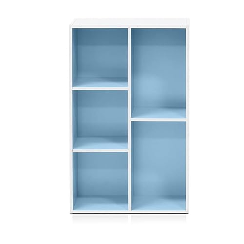 Furinno 11069 Librerie, Legno, Bianco/Light Blue, 5 scomparti