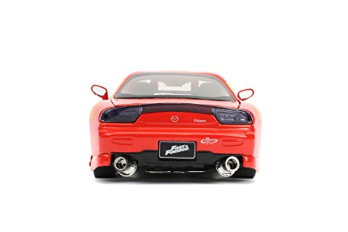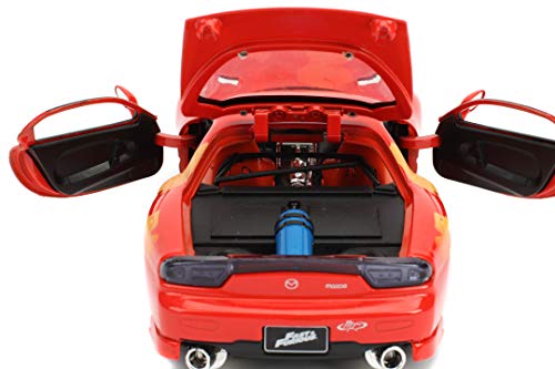 Jada Toys Fast & Furious Orange JL5 Mazda RX-7, modello tuning in scala 1:24, porte apribili, cofano e bagagliaio, ruota libera, rosso metallizzato