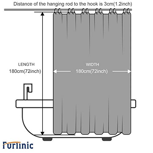 Dimensioni: 180 cm/altezza, 180 cm/larghezza. Una confezione contiene 1 tenda da doccia e 12 ganci per tenda da doccia.