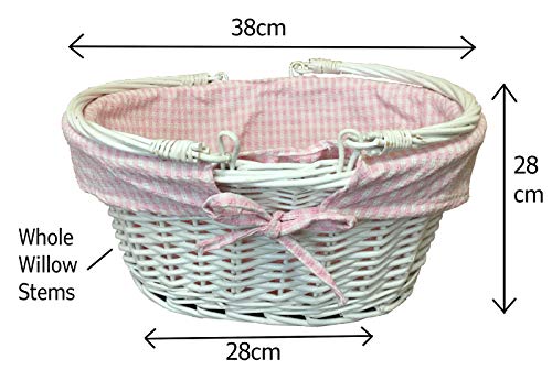 Furniture and your home Bianco Cesto di Vimini Foderato con Maniglie e Fodera in Cotone Rosa Percalle