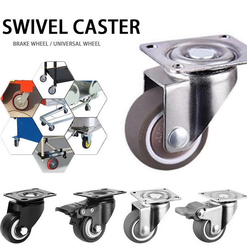 80kg 4pcs Furniture Casters Wheels Soft Rubber Swivel Caster Silver Roller Wheel For Platform Trolley Chair Household Accessori