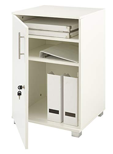 MMT Furniture Designs Ltd Mobiletto per ufficio in legno bianco alto 68 cm, comodino con anta con serratura - uso universale
