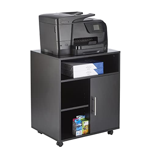 MMT Furniture Designs Ltd Supporto per stampante, autoportante, da ufficio, con rotelle, 3 ripiani aperti, stile moderno, 65 x 45 x 73 cm, colore: nero