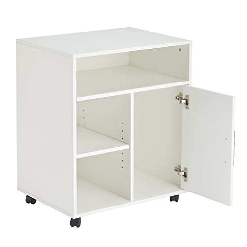MMT Furniture Designs Ltd Supporto per stampante indipendente da ufficio, scrivania con ruote, 3 ripiani aperti, stile moderno, 65 x 45 x 73 cm, colore: bianco