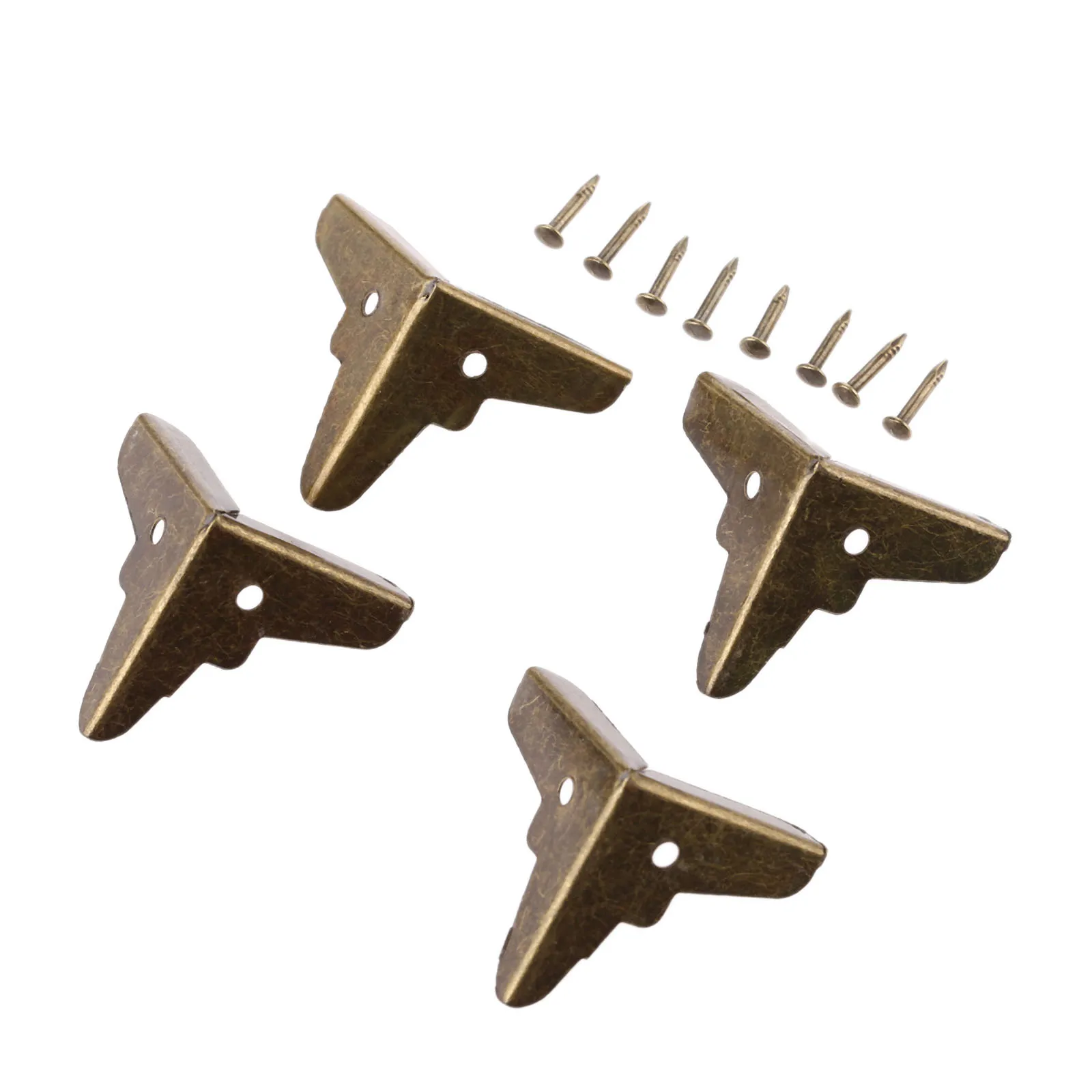 4Pc Furniture Fittings Antique Corner Bracket Jewelry Case Wood Box Feet Leg Corner Decorative Protector Furniture Hardware 20mm