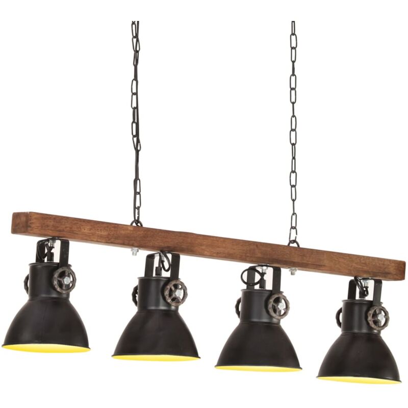 Questa lampada da soffitto, con un paralume di 17 cm di diametro, è sicuramente un punto culminante nel soggiorno, sala da pranzo, cucina e altro ancora. I paralumi in ferro, con finitura nera e legno massello di mango con finitura marrone granaio stagionato, si adatteranno perfettamente a interni rurali o industriali. La lampada, con 4 paralumi, ha un attacco E27 per una lampadina di massimo 25 watt. Potete scegliere e installare lampadine E27 con vari colori della luce, creando un'atmosfera di relax e riposo. Si prega di notare che le lampadine non sono incluse. Colore: Nero e marrone Materiale: Ferro con rivestimento nero, legno massello di mango con finitura colore marrone granaio stagionato Dimensioni complessive: 90 x 17 x 25 cm (L x P x A) Diametro paralume in ferro: 17 cm Potenza massima: 25 W Con 4 paralumi Funzionamento a bassa tensione La lampadina non è inclusa