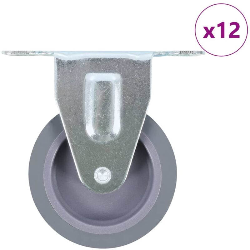 Questo set, composto da 12 rotelle fisse, costituisce l'accessorio perfetto per attrezzature e mobili di piccole dimensioni come banchi da lavoro, carrelli, tavolini da caffè, piantane, scaffali, carrelli della spesa, etc. Le ruote sono realizzate in TPR (gomma termoplastica), un materiale caratterizzato da un'ottima resistenza agli urti e alle vibrazioni e che consente alle ruote di girare in modo fluido e silenzioso. La loro superficie morbida, inoltre, protegge efficacemente il pavimento dai graffi. La struttura in ferro zincato è altamente resistente alla ruggine e fornisce una maggiore robustezza e durata alle ruote. Ogni ruota possiede una capacità di carico massima di 45 kg. La consegna include 12 rotelle fisse. Colore: Grigio Materiale: TPR (gomma termoplastica) e ferro zincato Diametro della rotella: 75 mm Larghezza della ruota: 27 mm Dimensioni della piastra: 65 x 65 mm (L x P) Distanza del foro: 49 x 49 mm Altezza di costruzione: 92 mm Capacità di carico massima: 45 kg (per