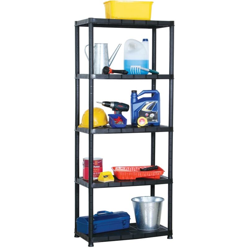 Questo versatile scaffale può essere utilizzato come libreria, espositore per decorazioni, espositore per piante e altro ancora. Questo scaffale è realizzato in plastica robusta, che lo rende facile da pulire. Il supporto di stoccaggio presenta 5 livelli, che vi consentono di mantenere i vostri vari oggetti in perfetto ordine. Questo ripiano espositivo, caratterizzato da un design compatto, sfrutta al massimo lo spazio limitato. Colore: Nero Materiale: Plastica Dimensioni: 71 x 38 x 170 cm (L x P x A) Peso massimo di carico (ogni livello): 30 kg Certificato TÜV GS Materiali di montaggio inclusi Assemblaggio richiesto: Sì AVVERTIMENTO: Per evitare il ribaltamento questo prodotto deve essere utilizzato con il dispositivo di fissaggio a parete fornito. Legal Documents: Maggiori dettagli su come evitare il rovesciamento dei mobili sono disponibili qui