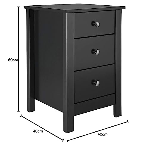 NJA Furniture Shaker - Comodino con 3 cassetti, 40 x 40 x 60 cm nero