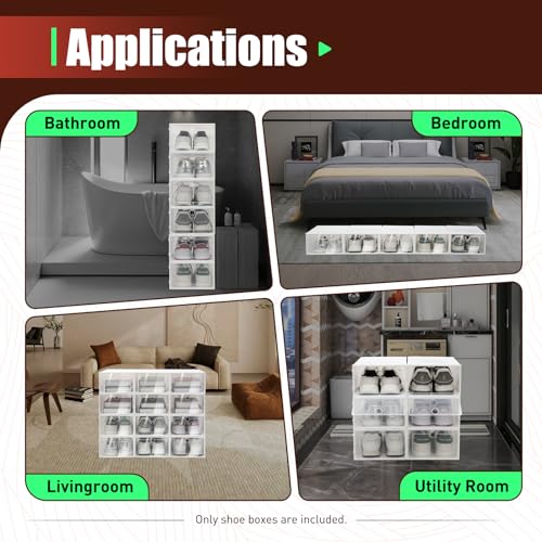 FUROMG 20 scatole per scarpe, in plastica, trasparenti, impilabili, in plastica, colore: bianco