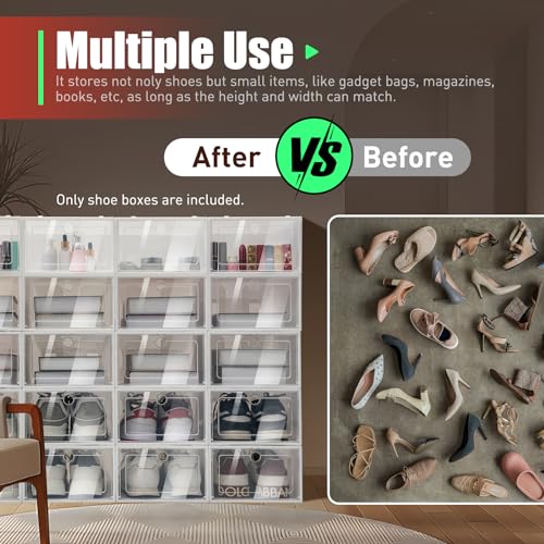 Design trasparente: è possibile inserire la scatola trasparente nella scatola per scarpe e trovare chiaramente le scarpe necessarie. Risparmia molto tempo per la tua mattinata.