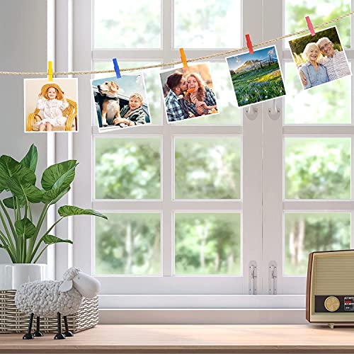 【156 Pezzi Mini Mollette Set】Le mollettine legno piccole 2,5cm hanno 150 pezzi con 5 spille da disegno e una corda di iuta lunga 10m in quantità sufficiente per l'uso quotidiano, dotata di una corda per altri oggetti decorativi come buste, biglietti d'auguri, ecc.