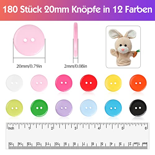 Furuising 180 Pezzi Bottoni per Cucito, 20mm Bottoni Colorati, 2 Fori Bottoni Resina Misti Rotondi con Scatola per Vestiti per Bambini Adulti Cucito Lavoretti Decorazione