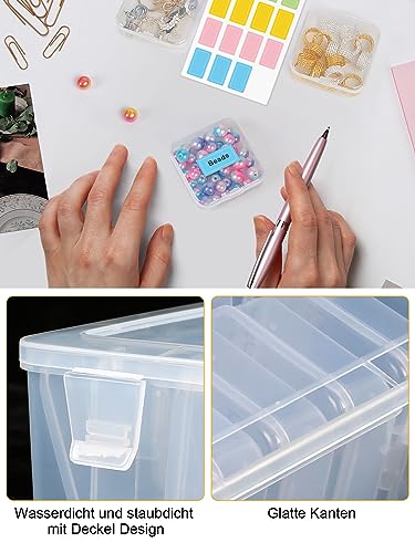【Scatole Trasparenti con Coperchio】Scatola trasparente Dimensione: 16.5cm * 12.7cm * 6.1cm (6.5 * 5.2 * 2.4in), scatola con coperchio piccole Dimensione: 5.5cm * 5.5cm * 2cm (2.16 * 2.16 * 0.79in), può ospitare le vostre esigenze diverse, grande scatola con coperchio di plastica, per garantire che tutte le scatole di stoccaggio con coperchio piccolo siano ben organizzate.