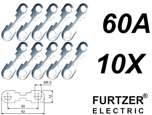 Fusibili per auto, TFS00, set da 10 pezzi, 30 A, 40 A, 50 A, 60 A, 80 A, 110 A, 150 A, 175 A, 32 V, corrente massima: 060 A Ampere