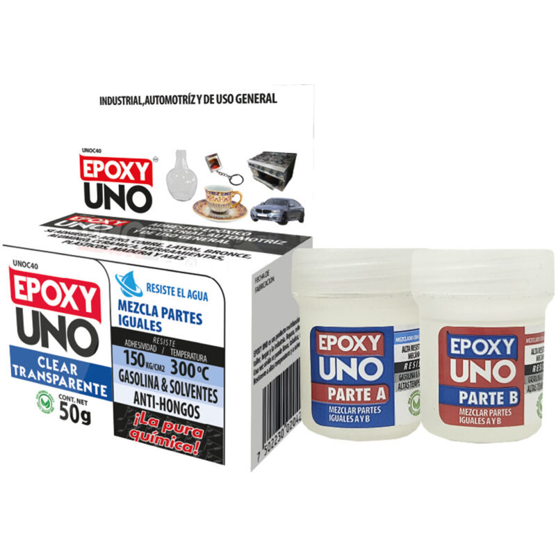Epossidico trasparente 50g . colore trasparente è un adesivo unico sul mercato, 100% cristallino senza solventi, ideale per giunzioni o rivestimenti 100% impercettibile.adesivo epossidico industriale, automobilistico e de uso generale .viene utilizzato per riempimenti e ricostruzioni, grazie alla sua consistenza pastosa sviluppa eccellenti proprietà meccaniche e di compressione, il suo rapporto di miscelazione lo rende facile da applicare,resiste alle alte temperature, non rammollisce, polimerizza sotto l'acqua, è antimicotico, resiste ai solventi, ai prodotti chimici, all'acqua e, una volta indurito, può essere carteggiato o verniciato.Adesione: acciaio, rame, ottone, bronzo, alluminio, ceramica, utensili, materie plastiche rigide, legno e altro ancora.