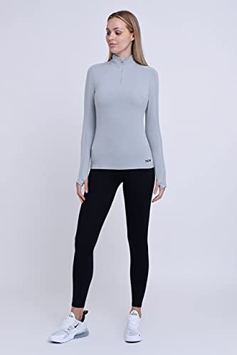 TCA Fusion Quickdry Maglia da Corsa A Manica Lunga da Donna con Colletto e Mezza Zip - Grigio, XS