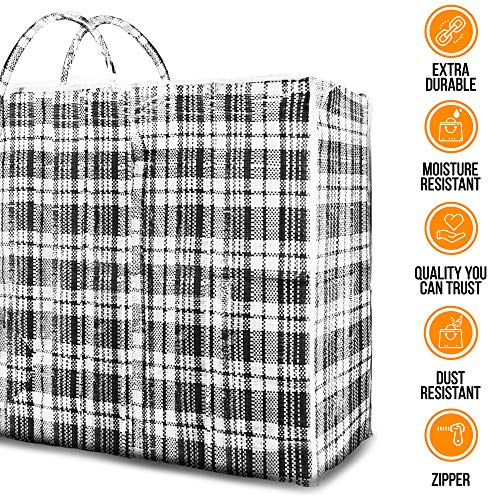 Fusion (TM), sacchetti per spesa e biancheria, riutilizzabili e resistenti, con zip, misura jumbo, 5 pezzi, X - Large