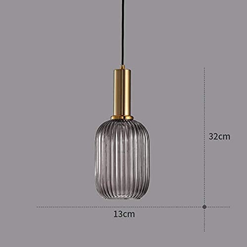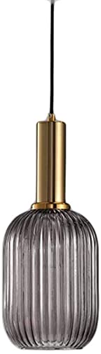 Fusmaker Lampada A Sospensione Moderna in Vetro Soffiato A Mano E Ottone Lampada Testa Singola E27 Plafoniera Per Camera Da Letto Cucina Corridoio Soggiorno,Smoky gray,A