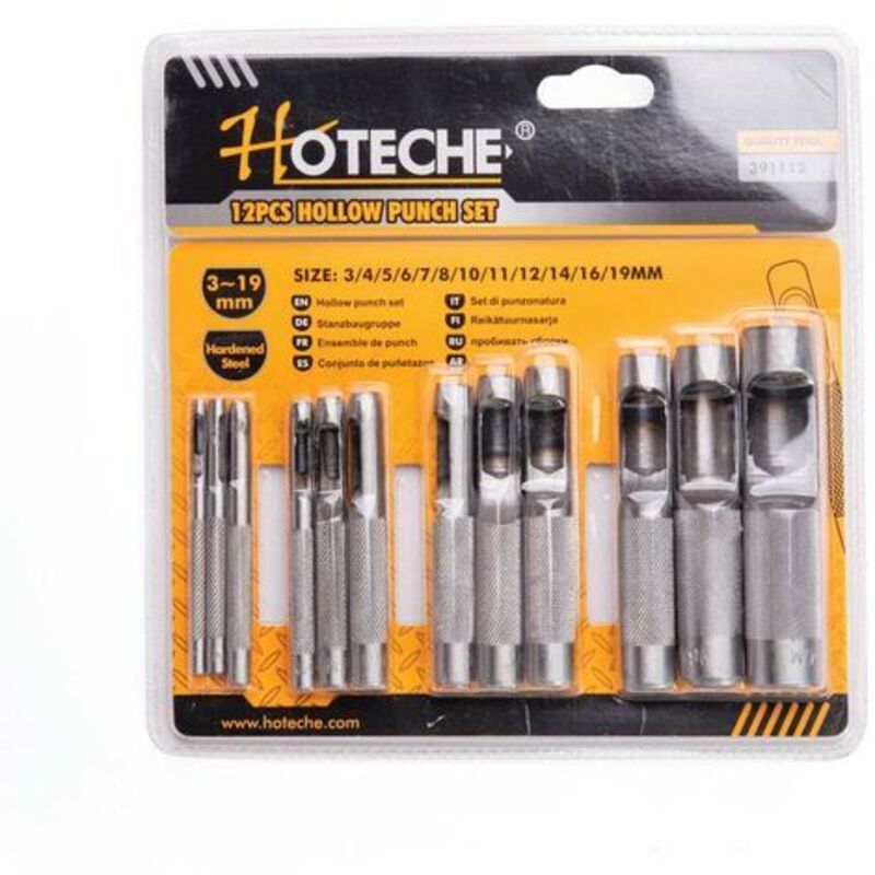 FUSTELLE-PUNZONI PER PELLE E CUOIO SET DA 12 PEZZI. IL SET SI COMPONE DI 12 FUSTELLE PROFESSIONALI PER FORARE PELLE, CUOIO, PLASTICA E QUANT'ALTRO. MISURE: 3--4--5--6--7--8--10--11--12- 14-- 16--19 mm LUNGHEZZA 85--105 mm