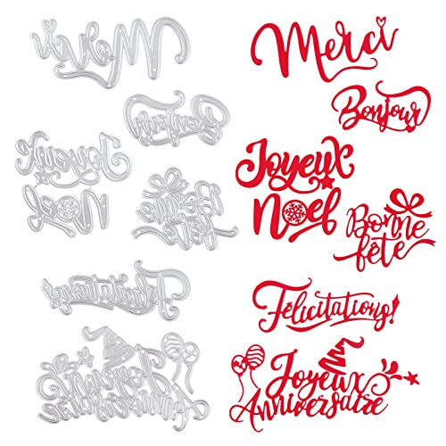 6 Pz Fustelle Scrapbooking Scritte Francesi Taglio Muore Joyeux Anniversaire Cutting Dies