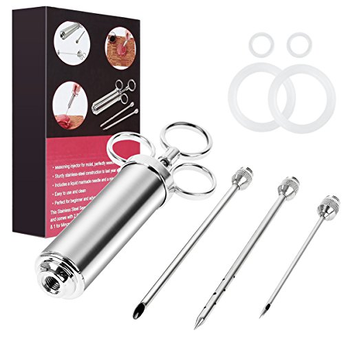 Fusto in acciaio INOX condimento carne iniettore kit con 56,7 gram di grande capienza + 3 aghi + 4 O-ring di ricambio professionale per marinata manzo pollo Turchia