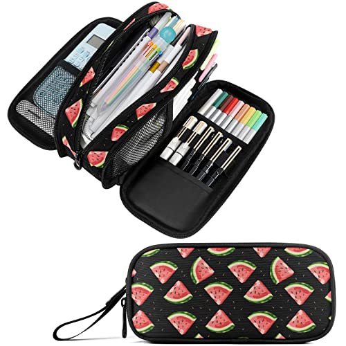 Fustylead Astuccio grande con anguria e astuccio per cancelleria a 3 scomparti, organizer per ufficio scolastico, Nero, Misura unica, Portatile