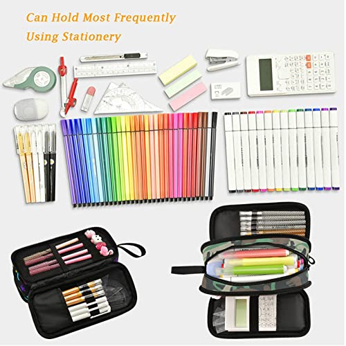 Grande capienza: 8,86 x 3,6 x 10,9 cm, tre scomparti con chiusura a cerniera, può contenere fino a 40 penne o 80 matite e può contenere gomme, calcolatrice, pastelli, temperamatite, mini pinzatrice, nastro adesivo e altri articoli scolastici.