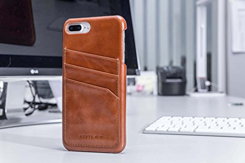 FUTLEX Custodia Cove Case Realizzato in Vera Pelle in Stile Vintage Compatibile con iPhone 8 Plus iPhone 7 Plus (5.5") - Marrone - con Fessure per Carte - Design e Taglio preciso - Realizzato a Mano
