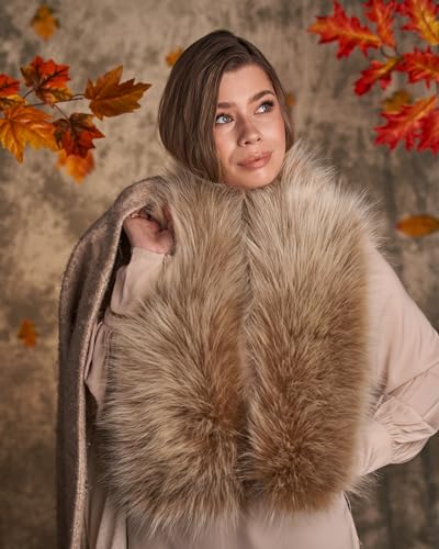 Futrzane Classic Sciarpa - Collo di Pelo Donna - Coprispalle Pelliccia Sintetica (Marrone Claro Classic)
