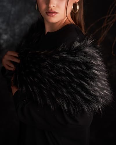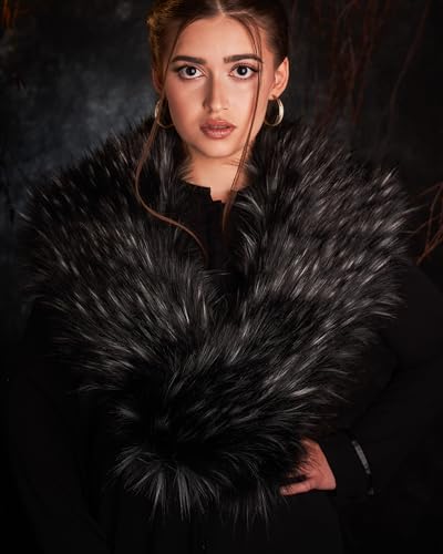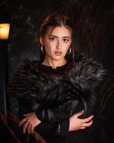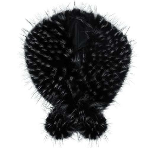 Futrzane Classic Stola - Collo Pelliccia Sintetica per Cappotto - Sciarpa Donna (Nero con Bianco Classic)