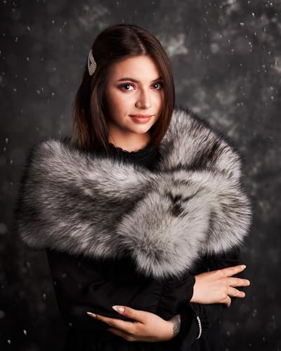 Futrzane Classic Stola - Collo Pelliccia Sintetica per Cappotto - Sciarpa Donna (Argento Classic)