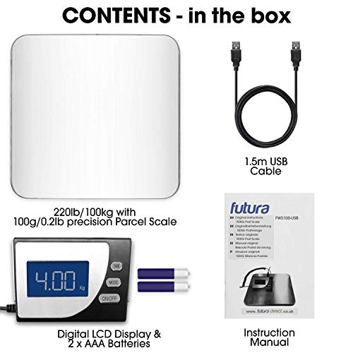 Futura - Bilancia digitale per pacchi da spedire, resistente, bilance postali elettriche, pesa fino a 100 kg con precisione di 100 g