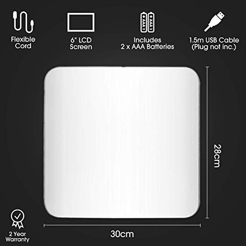 Grande display LCD: Le bilance per spedizioni vantano un ampio display digitale LCD a risparmio energetico di facile lettura con spegnimento automatico. La bilancia industriale è un prodotto ideale per l'ufficio, può essere alimentata tramite cavo USB incluso (presa USB non inclusa) o può essere resa portatile quando si utilizzano le 2 batterie AAA incluse. Sia il cavo USB che le batterie sono inclusi, rendendo la bilancia commerciale un prodotto perfetto per qualsiasi attività grande o piccola.
