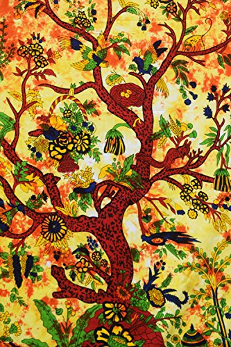 FUTURE HANDMADE Albero di Vita Giallo Tie Dye Arazzo Appeso a Parete Hippie Boemo Gemello arazzi Camera Arredamento Copriletto