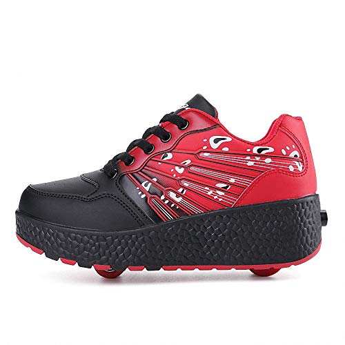 FZ FUTURE Scarpe da Skateboard con Rotelle, Scarpe da Skateboard per Bambini, Rotelle Automatiche Skateboard da Skateboard All'aperto Ginnastica Moda Sneaker, per Ragazze e Ragazzi,Rosso,30
