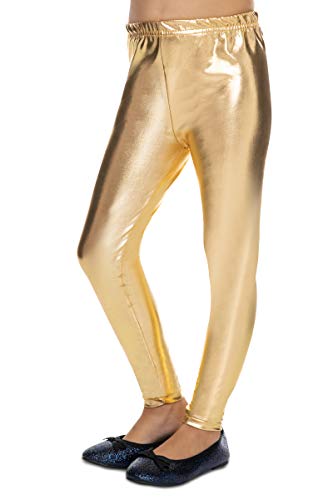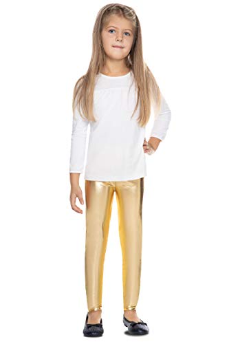 Futuro Fashion - Leggings da bambina lucidi a lunghezza intera, effetto bagnato, in lattice, colore: LTXK Oro 152 cm