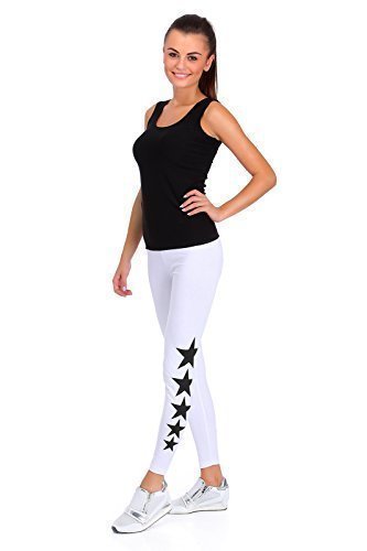 FUTURO FASHION - Leggings Lunghi in Cotone Elasticizzato - Vita Tradizionale - Stampa con Stelle - Taglie dalla 40 alla 54 - LG - Bianco - 48/50